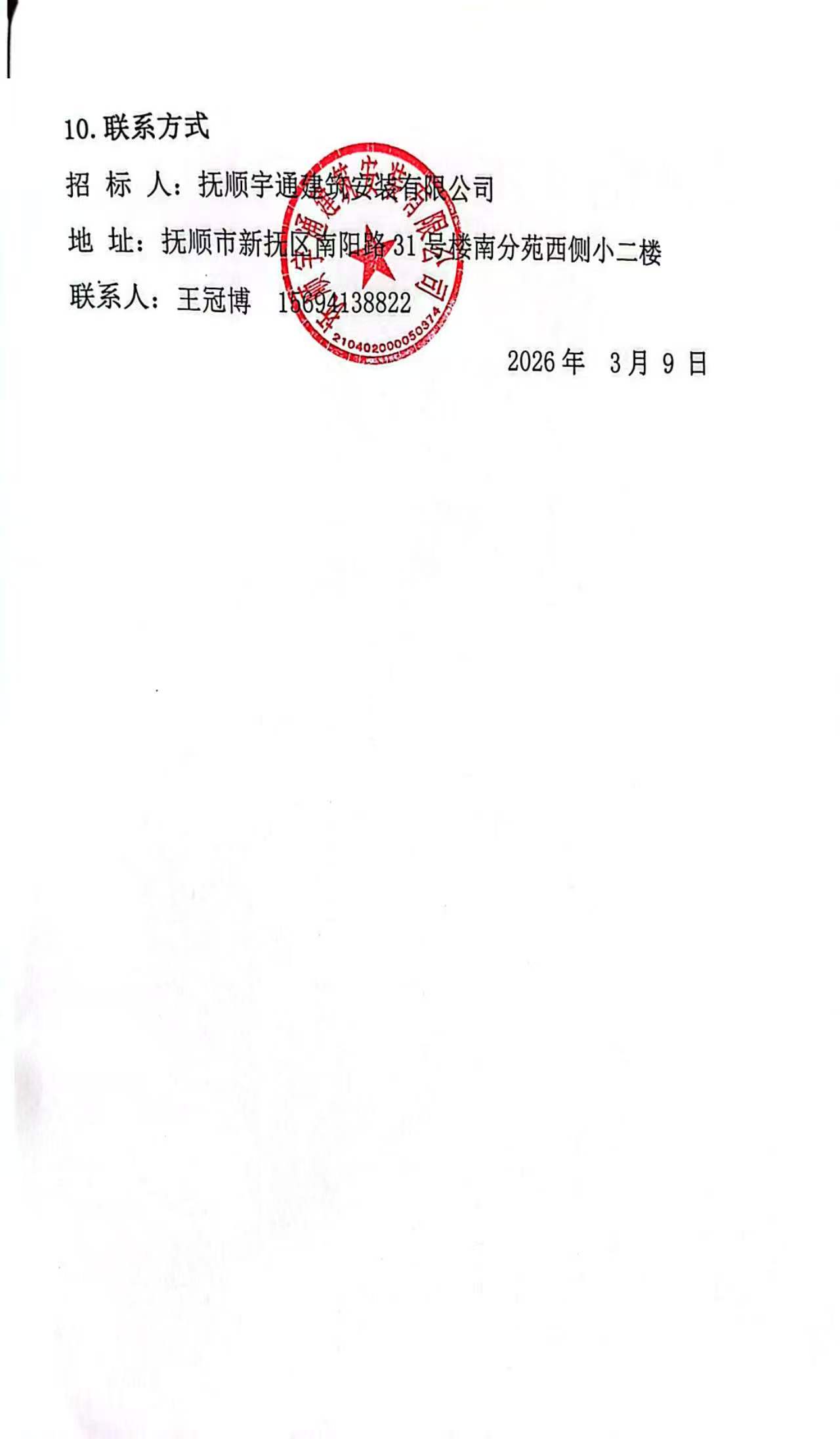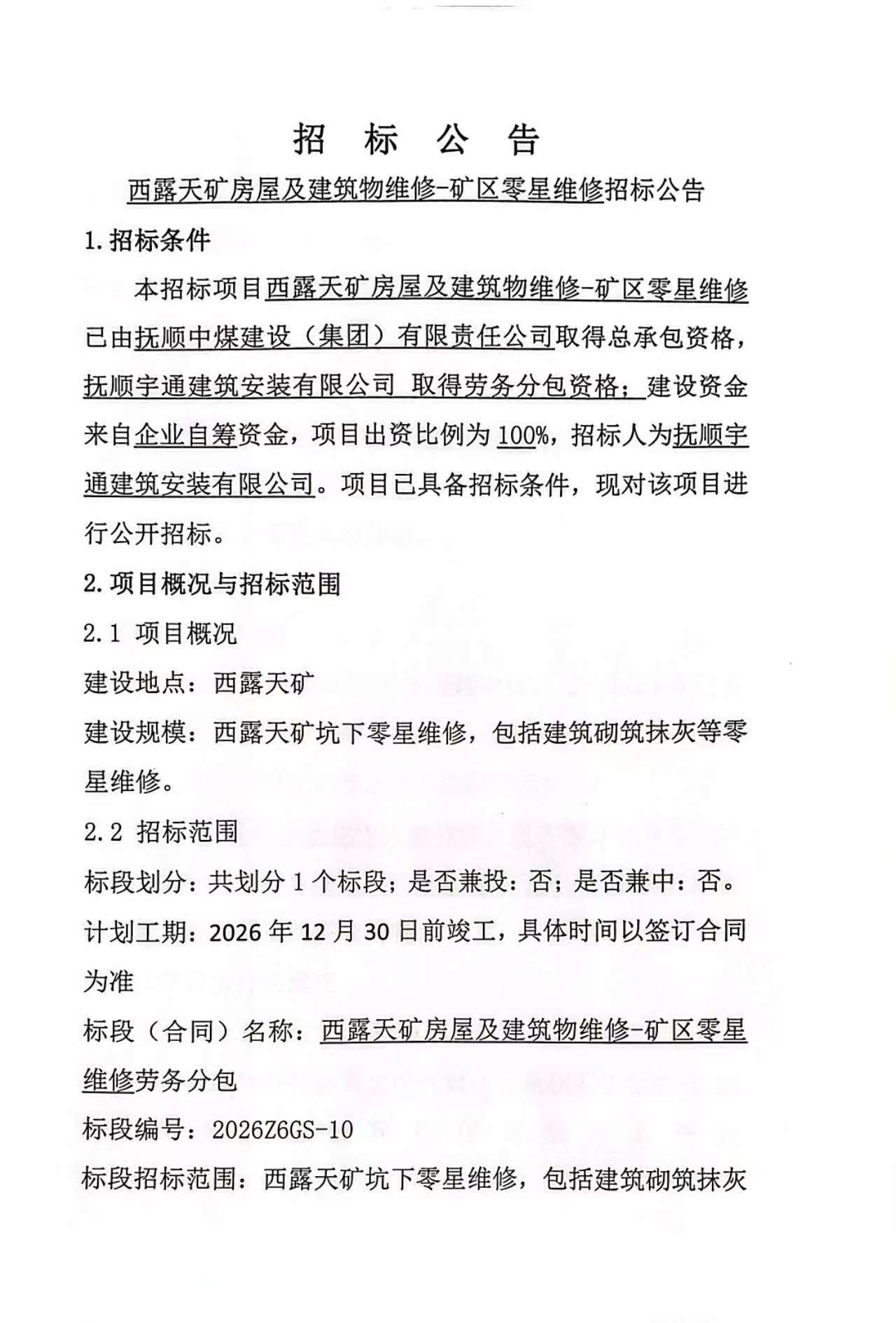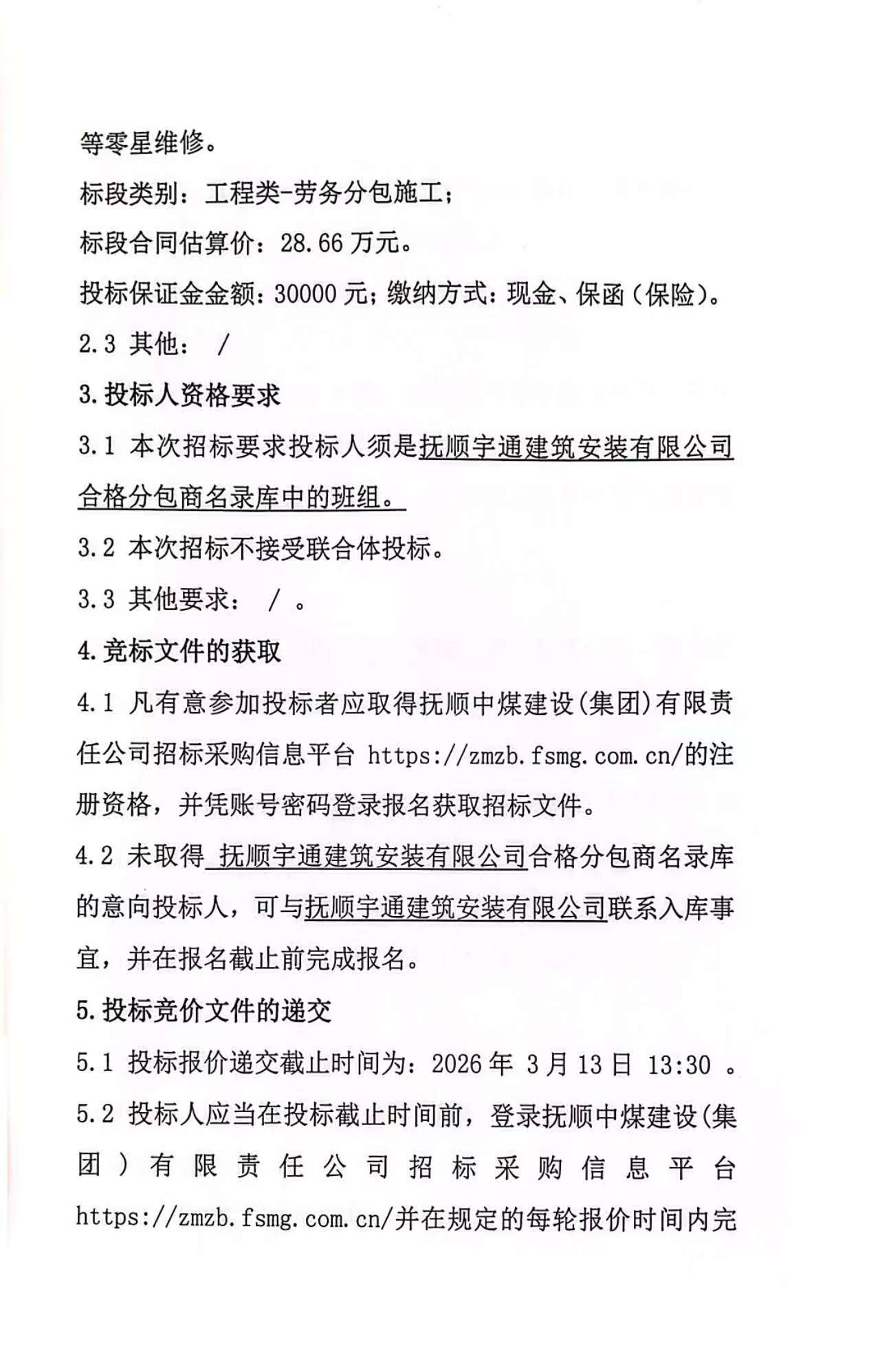 公告时间:2026-3-9 15:02:40来源:抚顺中煤建设(集团)有限责任公司招标采购信息平台